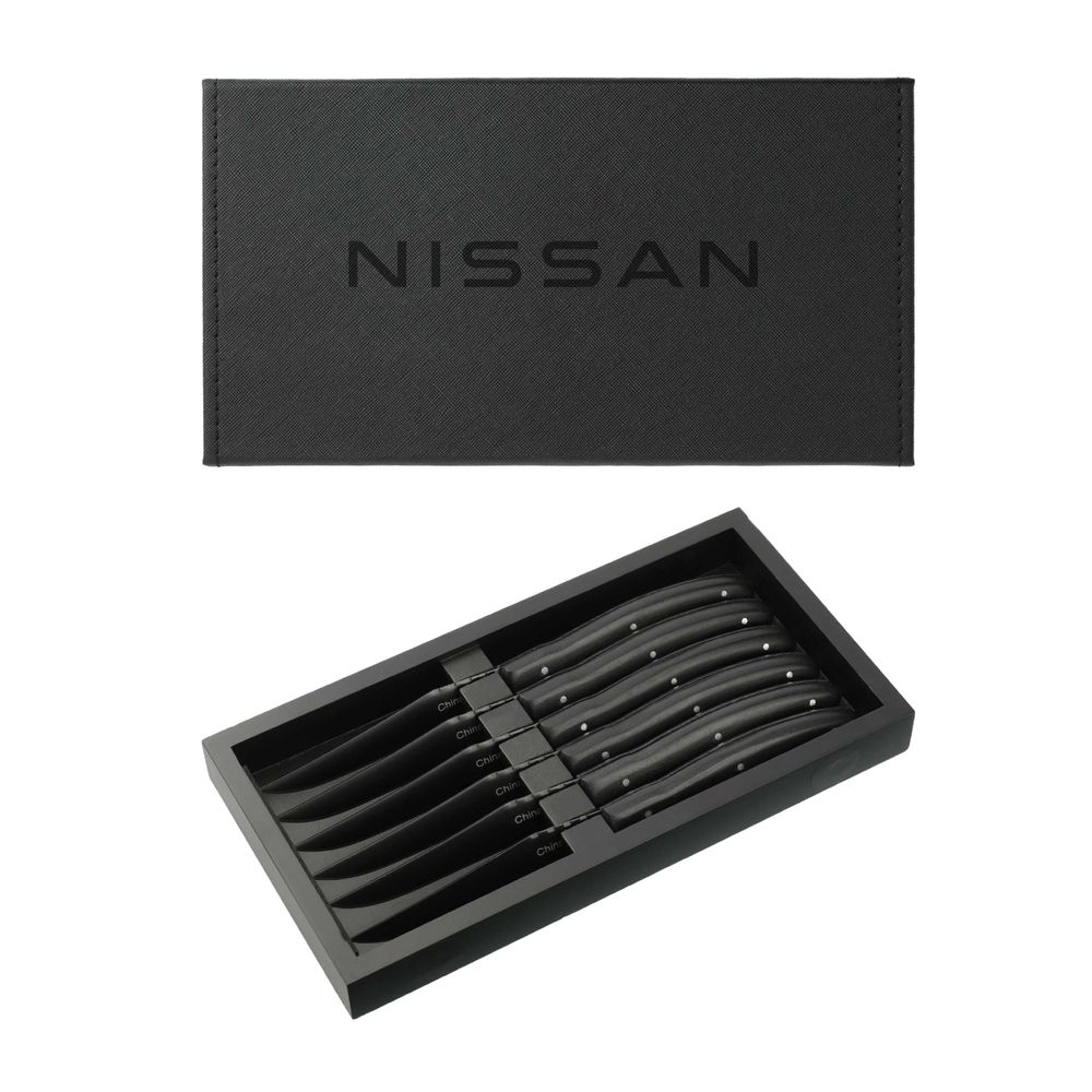 - All of the knives have stainless steel blades with black pakka wood handles.